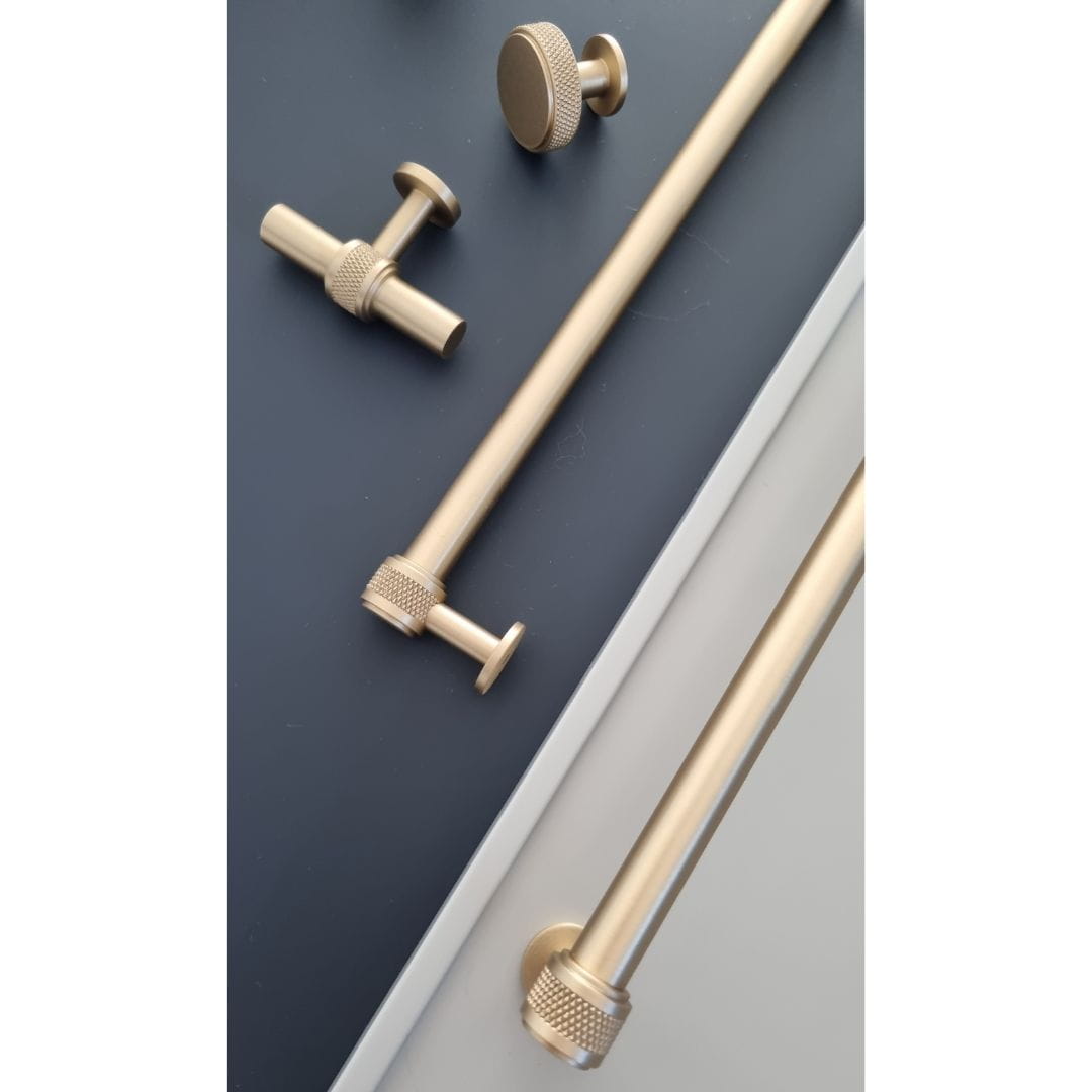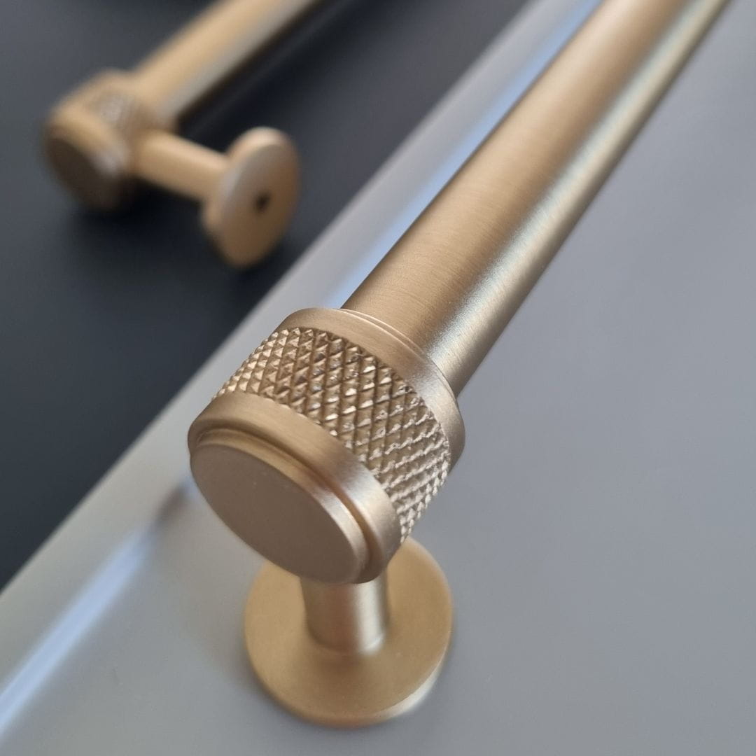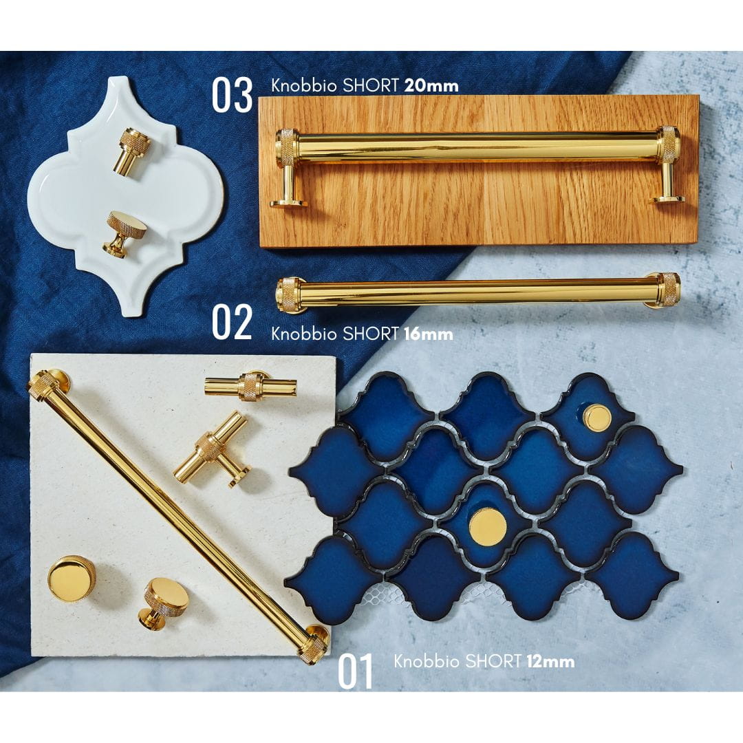 Kolekcja Knobbio powstała w oparciu o znaną już dobrze kolekcję Mediolan nadając jej mocniejszego charakteru za pomocą moletkowania/rydełkowania - ozdobnych frezów zapewniających wyjątkowy design. Styl nawiązujący do Skandynawskich uchwytów świetnie sprawdza się w połączeniu ze stylem loftowym w wykończeniu Czarnym i Mosiądz Szczotkowany lub klasycznej elegancji w wykończeniach bardziej biżuteryjnych jak Mosiądz Polerowany czy Nikiel.